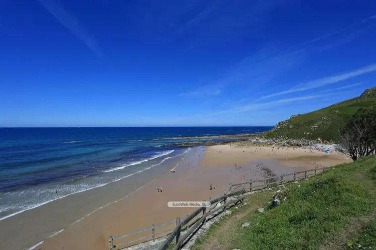Playas | Ribadesella | Características. Ocupación: Media. Longitud aproximada: 100 m Accesos: Rodados. Servicios: Aparcamiento: Sí Socorrismo: No. Material: Arena fina. Color: Blanquecino. Forma: Irregular. Desembocadura fluvial: Río Guadamía. Entorno: Rural y de segunda residencia. Tipo de playa: Aguas tranquilas. Atractivos: Pesqueros (pesca deportiva), turístico-recreativos y deportivos (vela). Peligrosidad: Baja. Descripción. En l
