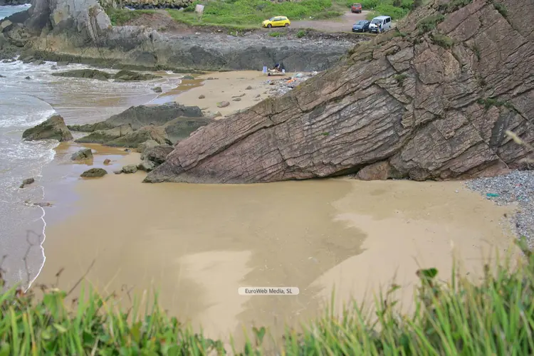 Playas | Valdés | Características. Ocupación: Media. Longitud aproximada: 80 m Accesos: A pie. Servicios: Aparcamiento: No. Socorrismo: No. Material: Arena y cantos. Color: Oscuro. Forma: Rectilínea. Desembocadura fluvial: Ninguna. Entorno: Rural. Atractivos: Recreativos. Peligrosidad: Media. Descripción. Cala de pequeñas proporciones y fuertes acantilados, disfrutada casi exclusivamente por los ocupantes del cercano camping de los Cantile