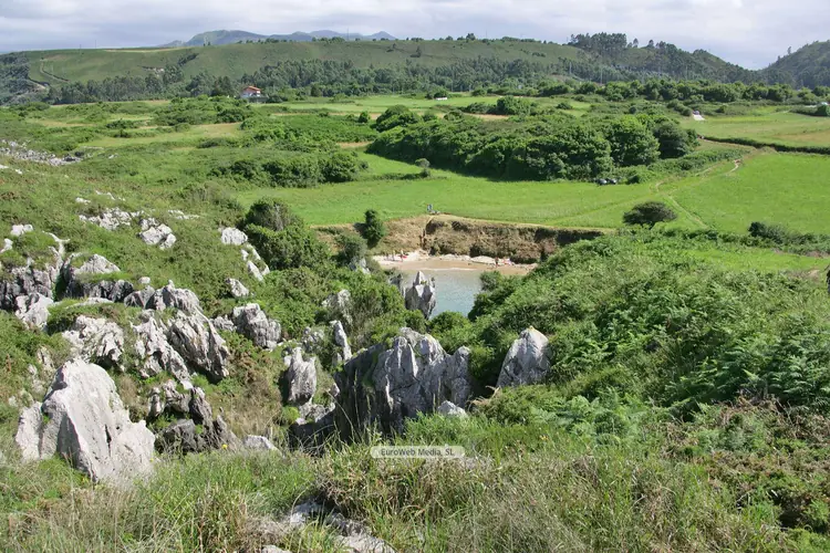 Playas | Llanes | Responde a una tipología de depresión circular, cerrada, conectada con el mar subterráneamente. Se revela como un importantísimo conjunto cárstico que le ha valido el reconocimiento de Monumento Natural por el PORNA (Plan de Ordenación de los Recursos Naturales de Asturias). Características generales: Longitud playa: 30 metros Anchura media: 17 metros Grado ocupación: Medio Grado urbanización: Aislada