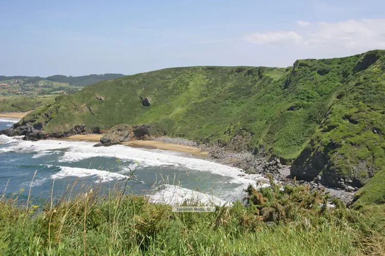 Playas | Muros de Nalón | CARACTERÍSTICAS GENERALES. Nombre de la playa: Playa Cazonera Descripción: Playa compuesta por bolos y rocas, contigua a la de La Atalaya, de la que la separan unos islotes, llamados «El Paso». No ofrece equipamiento alguno. Longitud: 350 metros Anchura: 30 metros Variación de la anchura: Mucha Grado de ocupación: Medio Grado de urbanización: Aislada Paseo marítimo: No Fachada del litoral: Acantilado Tipo d
